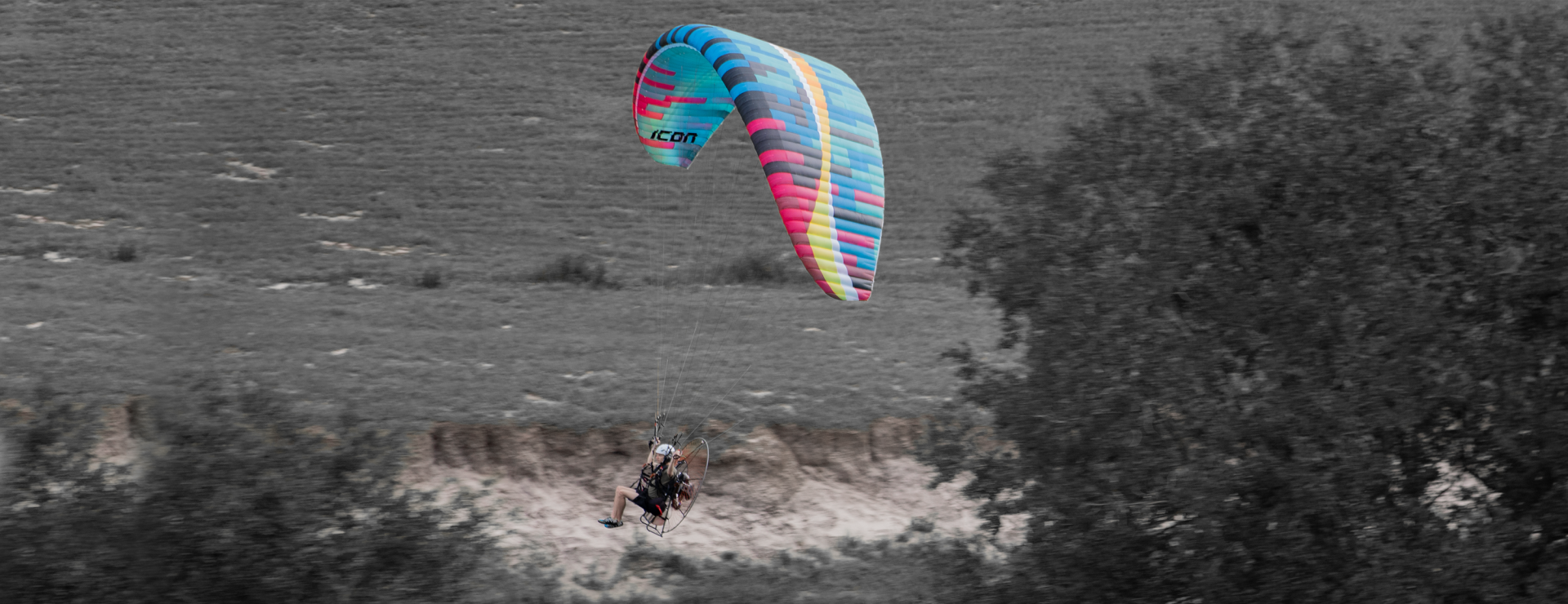 Plug in, power up, and get ready to roll. The ICON is a brand-new freestyle paramotor wing for advanced and expert pilots who want pure energy in the sky. With a flat aspect ratio of 5.7, 57 cells, and shorter lines than anything in its class, the ICON doesn’t just turn – it spins, rocks, and rolls.